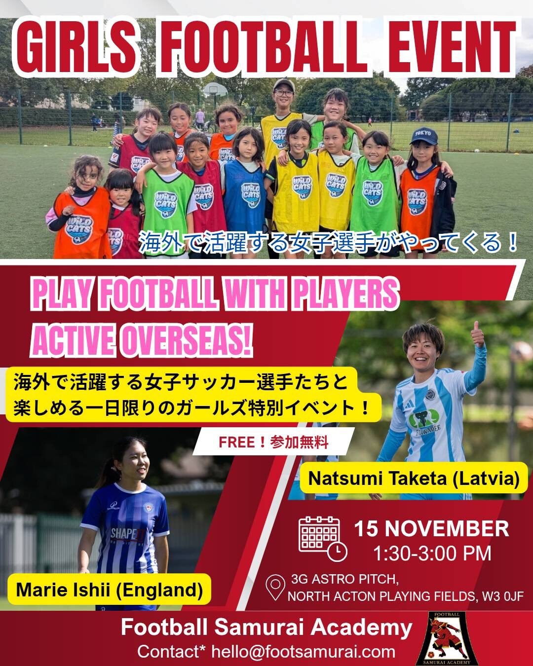 私が普段ガールズクラスのコーチをさせていただいている日系フットボールアカデミー SAMURAI FOOTBALL ACADEMYにて、