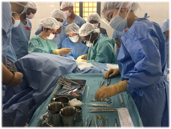 赤道直下、30度を超える酷暑。滅菌環境を守るために窓は開けられず、エアコンもない室内で、全身ガウンに身を包み、1日4件以上の手術に朝から晩まで向き合いました。